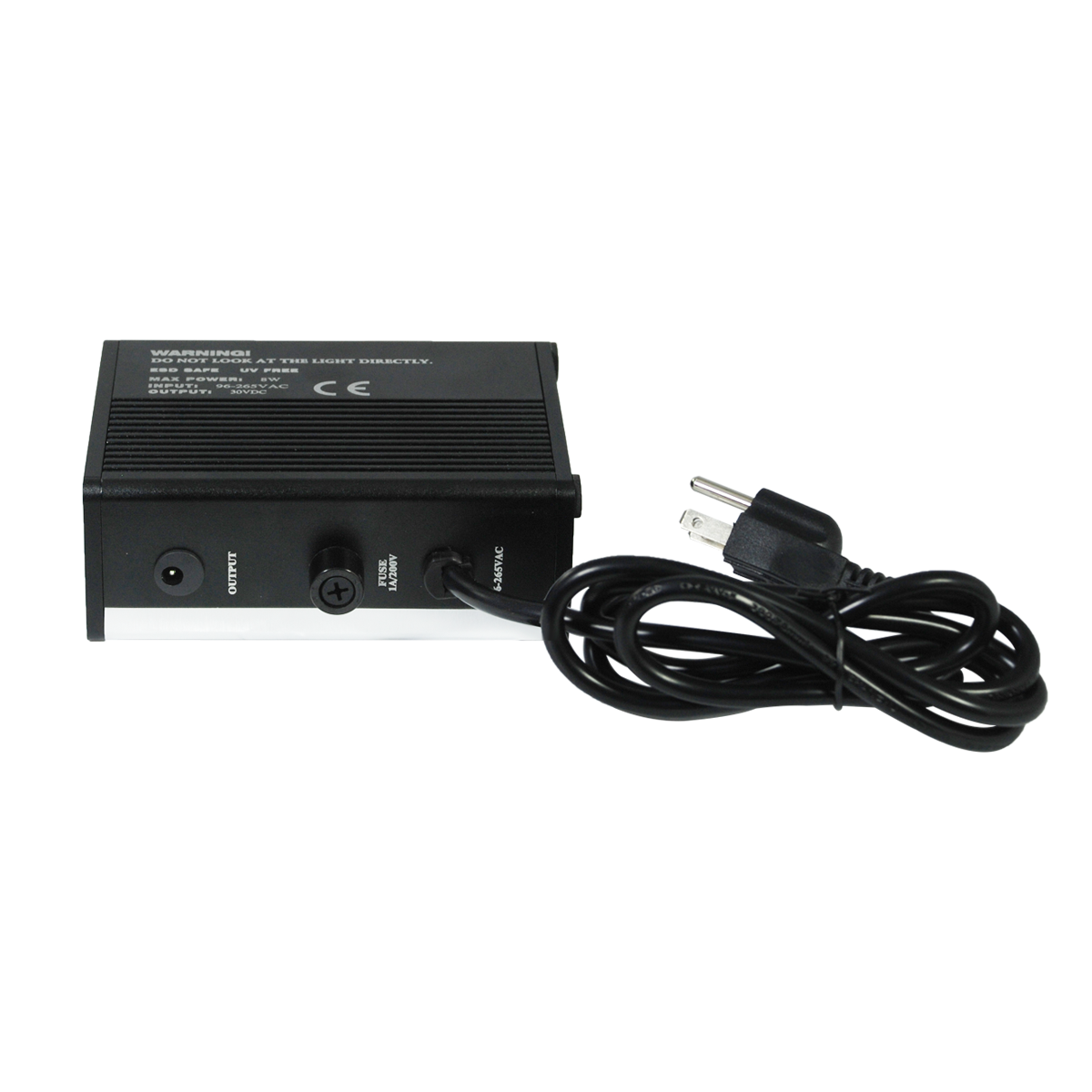 UV FREE LED Light. Ring I.D. Size: Dia. 61mm. LED Quantity: 8. Light Adjustable. Pointer Panel Meter/Scale. Bulb Color (Wavelength): UV FREE. Output Power: 8W. Input Voltage: AC 96-265V 50/60Hz. Output Voltage: DC 30V. Power Cord Connector Type: USA 3 Pins. ESD Safe.