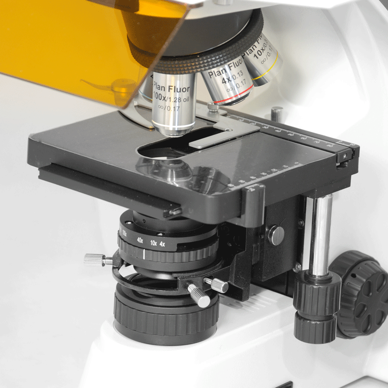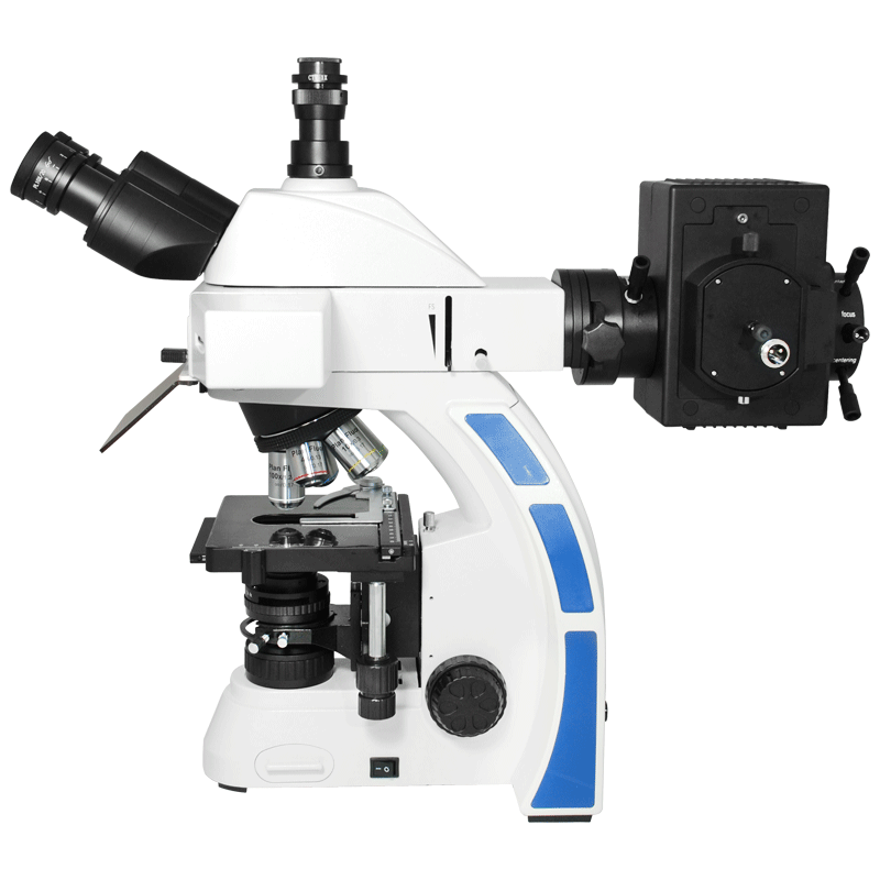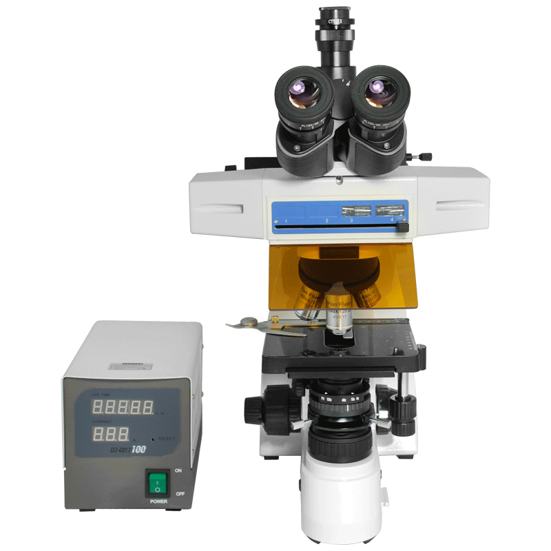 40X-1000X Fluorescence Microscope, Trinocular, Dual Light MH, Plan Fluor Semi-Apochromatic Objectives