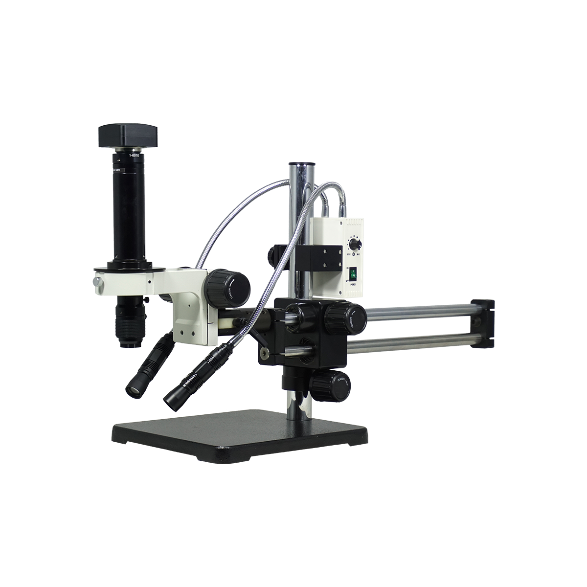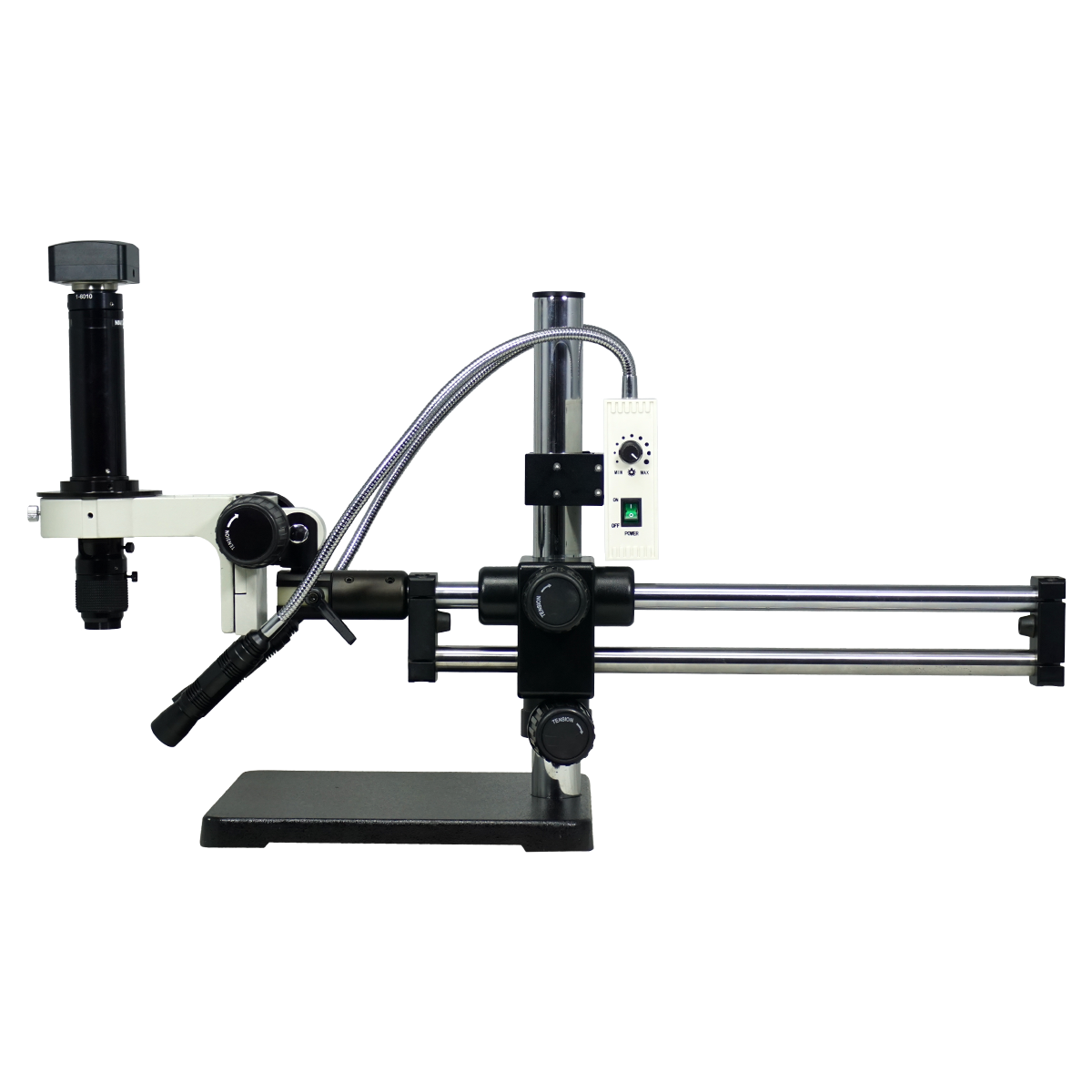 Infinite. Total Magnification: 0.7-4.5X. 1X Built-in Objective. Standard Coupler: 1X. Zoom Ratio: 1:6.4. Body Mounting Size for Stand: Dia. 39.7mm. Dual Arm Stand. LED Light. Light Adjustable. CMOS. 5.0 Megapixels. USB 2.0. Windows XP/Vista/7/8/10/11/OSX/Linux 2.6 and above. Input Voltage: AC 100-240V 50/60Hz. The optical system lens is provided by Navitar, and other accessories such as Stands, camera and light source are provided by our company. Light Diffusers.