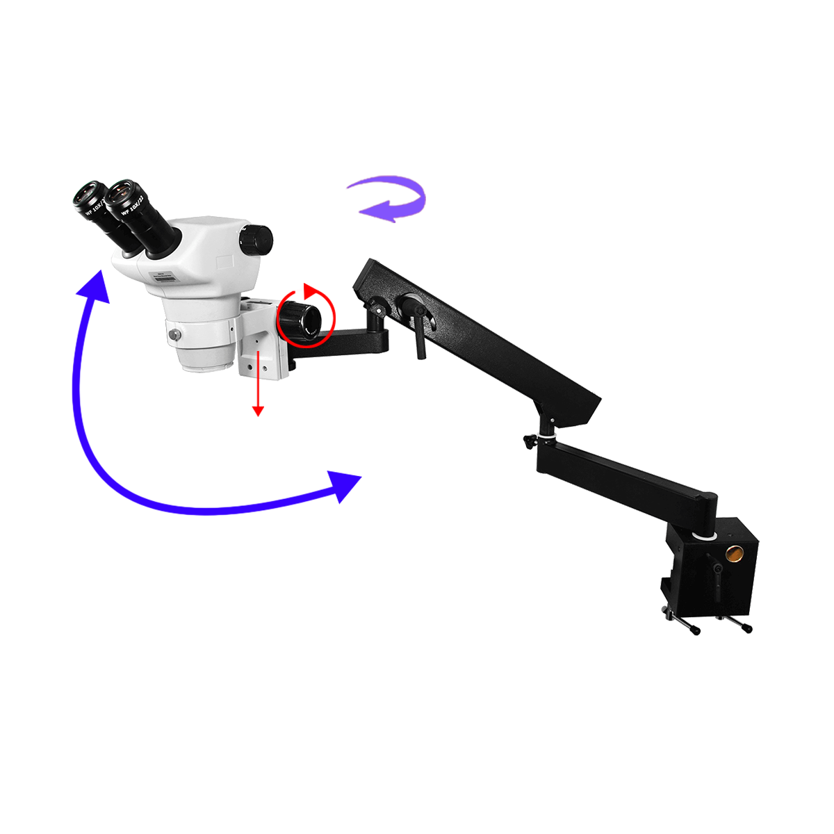 8X-50X Widefield Zoom Stereo Microscope, Binocular, Flexible Articulating Arm Table Clamp