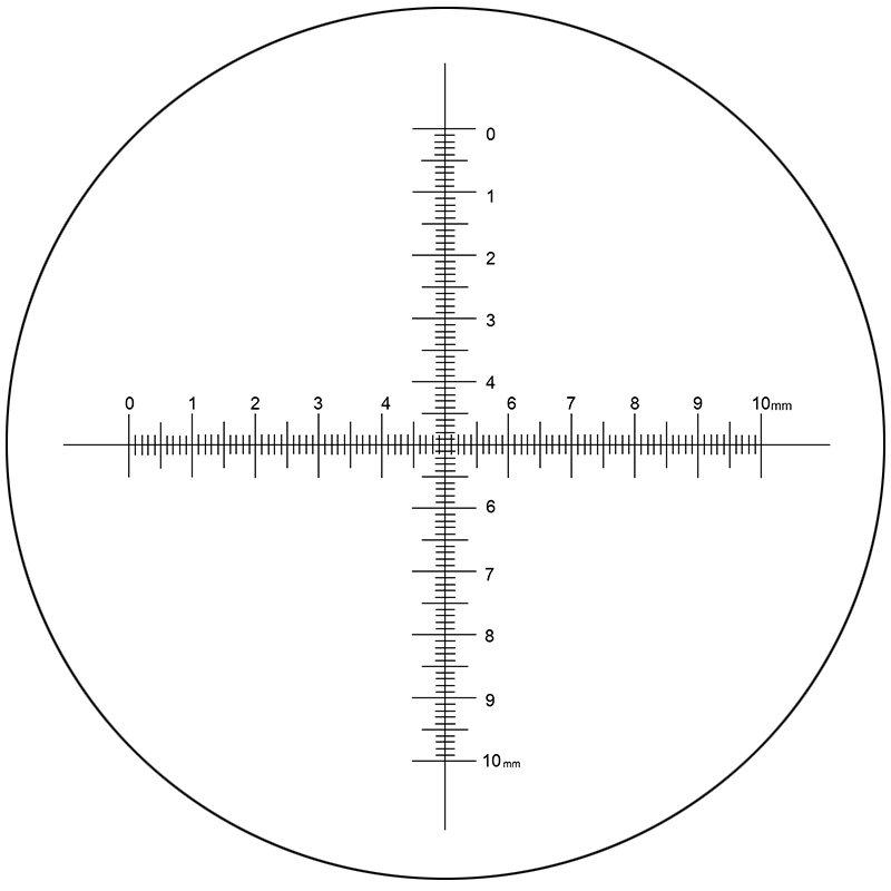 Reticle Eyepiece. Eyepiece Optical Magnification: 20X. Eyepiece Size for Eye Tube: Dia. 30mm. Eyepiece Field of View: Dia. 12mm. Crosshair Scale. Reticle Dimensions: Dia. 22x1.5mm. 10mm/100 Div .